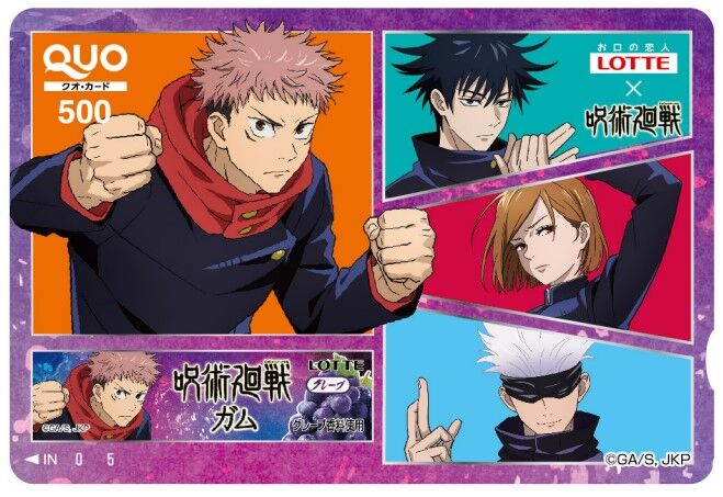 「呪術廻戦ガム〈グレープ〉」 に封入されている点数券のレッテル(ガムの包み紙)を集めて、住所・氏名・電話番号・希望のコースを記載いただき、希望のコースの点数分を1口とし下記の送り先に封書にて送付してください。