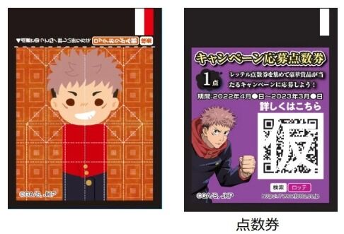 ◆「呪術廻戦ガムキャンペーン」製品に封入されている点数券を集めて応募いただくキャンペーンです。点数に応じてコースは3つ(10点コース、5点コース、3点コース)