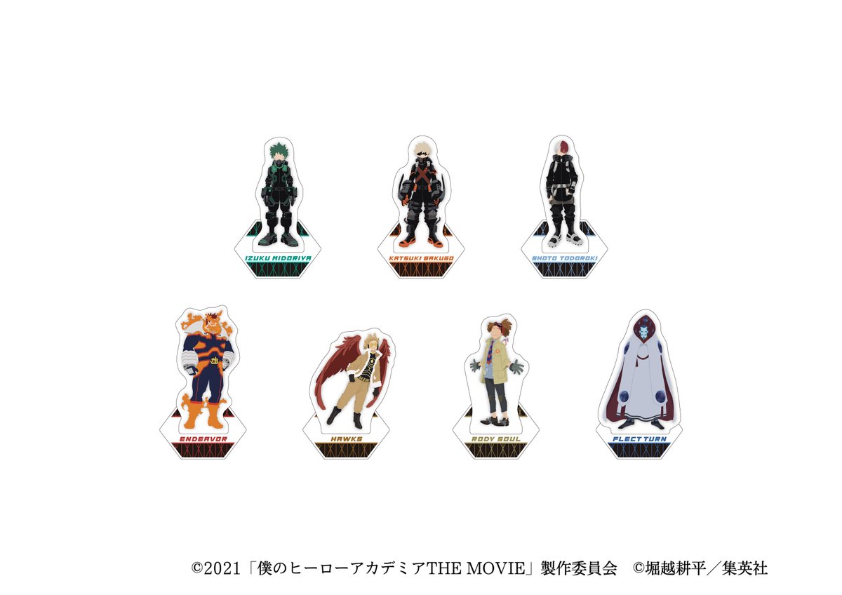 『僕のヒーローアカデミア THE MOVIE ワールドヒーローズミッション』Blu-ray&DVD好評販売中! 各有料配信サービスでも好評配信中! TVアニメ第6期が2022年秋放送開始予定の「僕のヒーローアカデミア」。 劇場版第3弾『僕のヒーローアカデミア THE MOVIE ワールドヒーローズミッション』をモチーフとしたイラストを使用したTDミニアクリルスタンドです。 ラインナップ:緑谷 出久、爆豪 勝己、轟 焦凍、エンデヴァー、ホークス、ロディ・ソウル、フレクト・ターン