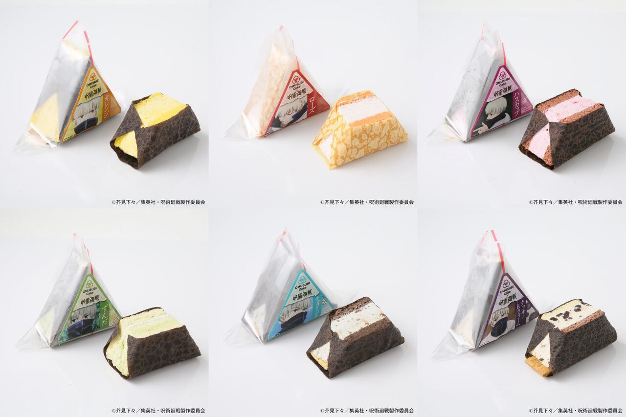 大人気TVアニメ『呪術廻戦』の人気キャラクター「狗巻 棘」をモチーフにした「おにぎりケーキ」はおかげさまで単月販売個数1万個を突破!新たな6種のフレーバーと、さまざまなシーンをお楽しみいただけるパッケージのおにぎりケーキ第2弾です。キャラクターが描かれたコラボパッケージ付です。ワンハンドでお手軽気軽に!少し汗ばむ陽気のいまの時期は解凍せずにアイスでも美味しくお召し上がりいただけます。全6種類のフレーバーです。