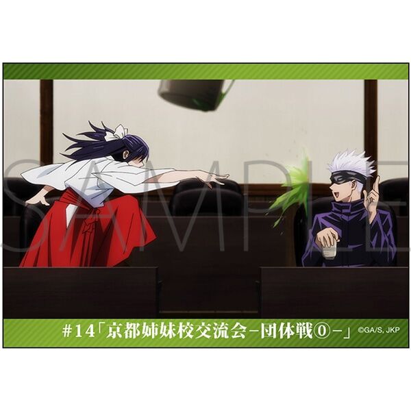 <商品情報>アニメ14話に登場した湯呑みをイメージしました!五条と歌姫の場面写イラストシートが付いてくるので、一緒にお茶を飲んでいるような気分になれるかも!?