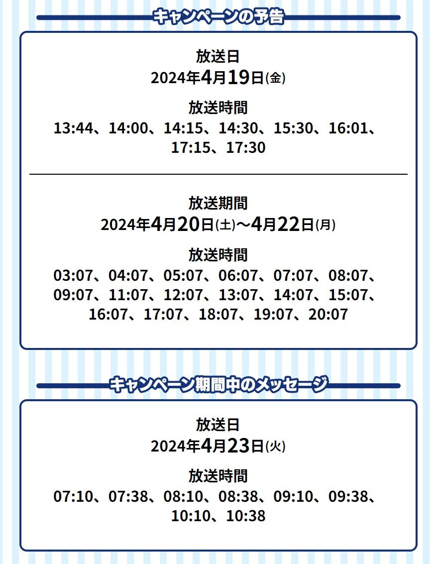 ・放送期間2024年4月20日(土)〜4月22日(月)