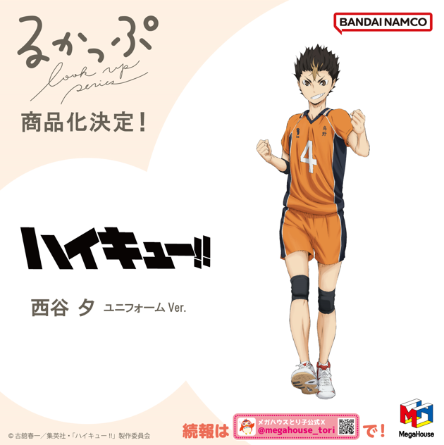 西谷が見上げる!るかっぷシリーズるかっぷシリーズより「西谷 夕」がユニフォーム姿で登場です!「るかっぷ」は「look up(見上げる)」を元にした造語で、あなたを見上げて見つめているような仕草が特徴の人気フィギュアシリーズです。「見上げ&おすわりポーズ」で、デスクの上などに飾ったとき、通常のフィギュアと比べて目が合いやすくなっています。首は可動で表情をつけて楽しむことができ、全高約110mmでボリューム感もたっぷりです。お部屋に飾れば、西谷がそこにいるかような存在感を楽しめます。「西谷 夕」「田中龍之介」が同時発売で、一緒に並べると世界観が広がります。仕様:彩色済みフィギュア全高:約110mm