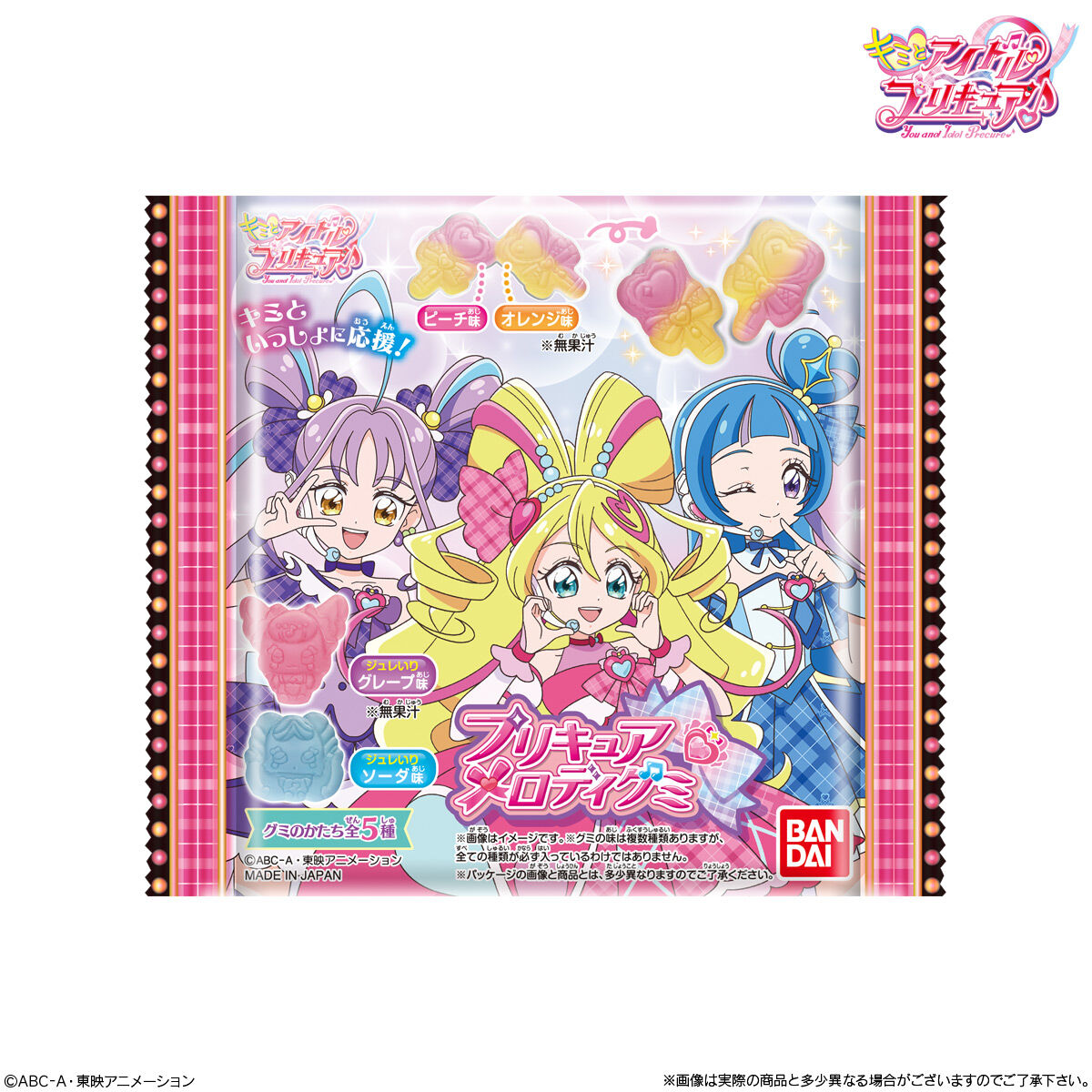 プリキュアメロディグミ 2025/01/06 発売元:バンダイ参考価格:130円(税込)発売日:2025年2月<予約&購入> あみあみ 楽天市場駿河屋 AmazonYahoo!ショップコレイズ METAL BOX アニメストア セブンネット <商品紹介>『キミとアイドルプリキュア♪』のモールドグミ!パッケージは全2種、グミのかたちは全5種です!味はジュレいりグレープ味・ジュレいりソーダ味・ピーチ味&オレンジ味です。●グミキャンディ33g<関連商品> < 前の記事次の記事 > コメント コメントフォーム 名前 コメント 記事の評価 リセット リセット 顔 星 情報を記憶 コメントを投稿する