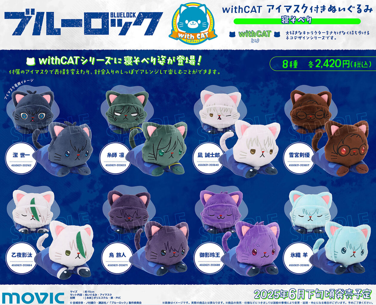 ブルーロック 2期 withCATアイマスク付きぬいぐるみ~寝そべり~ 2025/02/25 発売日:2025年6月発売元:ムービック参考価格:2,420円(税込) <予約&購入> アニメイト ムービック あみあみ ネオウィング 楽天市場駿河屋 AmazonYahoo!ショップコレイズ METAL BOX アニメストアホビーストック セブンネット <商品情報>withCATシリーズに寝そべりポーズが登場!付属のアイマスクで表情を変えたり、しっぽは針金入りなので動きを付けて楽しめます。【サイズ】約15cm【素材・仕様】ぬいぐるみ(アイマスク付き)本体:ポリエステル/鉄/PVC※商品には若干の個体差がございます。<関連商品> < 前の記事次の記事 > コメント コメントフォーム 名前 コメント 記事の評価 リセット リセット 顔 星 情報を記憶 コメントを投稿する