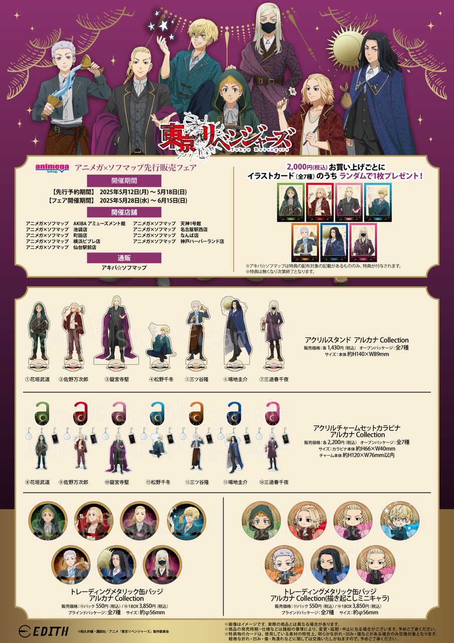 アキバ☆ソフマップ(通販)での特典付与条件について※【◆『東京リベンジャーズ』アルカナ先行販売 特典対象】と記載されている商品が対象となります。※特典対象を一注文2,000円(税込)お買い上げごとに、ランダムで1枚お付けいたします。※特典の絵柄はランダムとなり、お選びいただけません。※特典はなくなり次第、終了いたします。