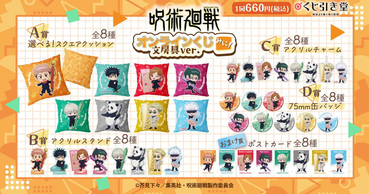 呪術廻戦 オンラインくじ みに! 文房具ver.【くじ引き堂】 2025/06/02 発売元:くじ引き堂 販売期間:2025年6月12日(木)12:00~6月30日(月)11:59 販売価格:1回 660円(税込) 発送目安:2025年6月 <予約&購入> くじ引き堂 <商品情報>【10連セット】をご購入いただいたお客様には「ポストカード」をもれなく1枚プレゼント<関連商品> < 前の記事次の記事 > コメント コメントフォーム 名前 コメント 記事の評価 リセット リセット 顔 星 情報を記憶 コメントを投稿する
