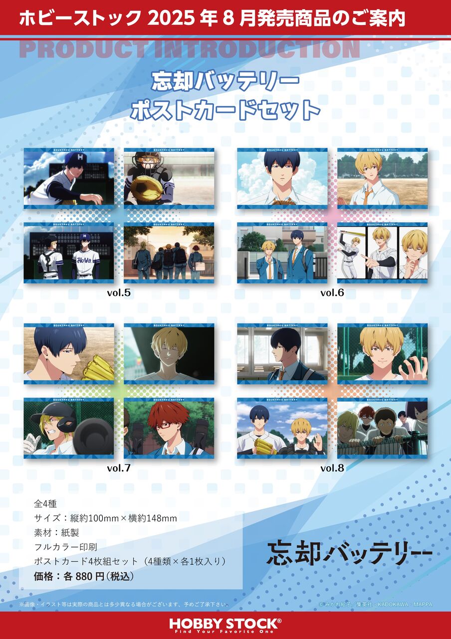 忘却バッテリー ポストカードセット vol.5~vol.8 2025/06/12 発売日:2025年8月 発売元:HOBBY STOCK参考価格:880円(税込)<予約&購入> ホビーストック アニメイト ネオウィング あみあみ 楽天市場駿河屋 AmazonYahoo!ショップコレイズ セブンネット METAL BOX アニメストア <商品情報><関連商品> < 前の記事次の記事 > コメント コメントフォーム 名前 コメント 記事の評価 リセット リセット 顔 星 情報を記憶 コメントを投稿する