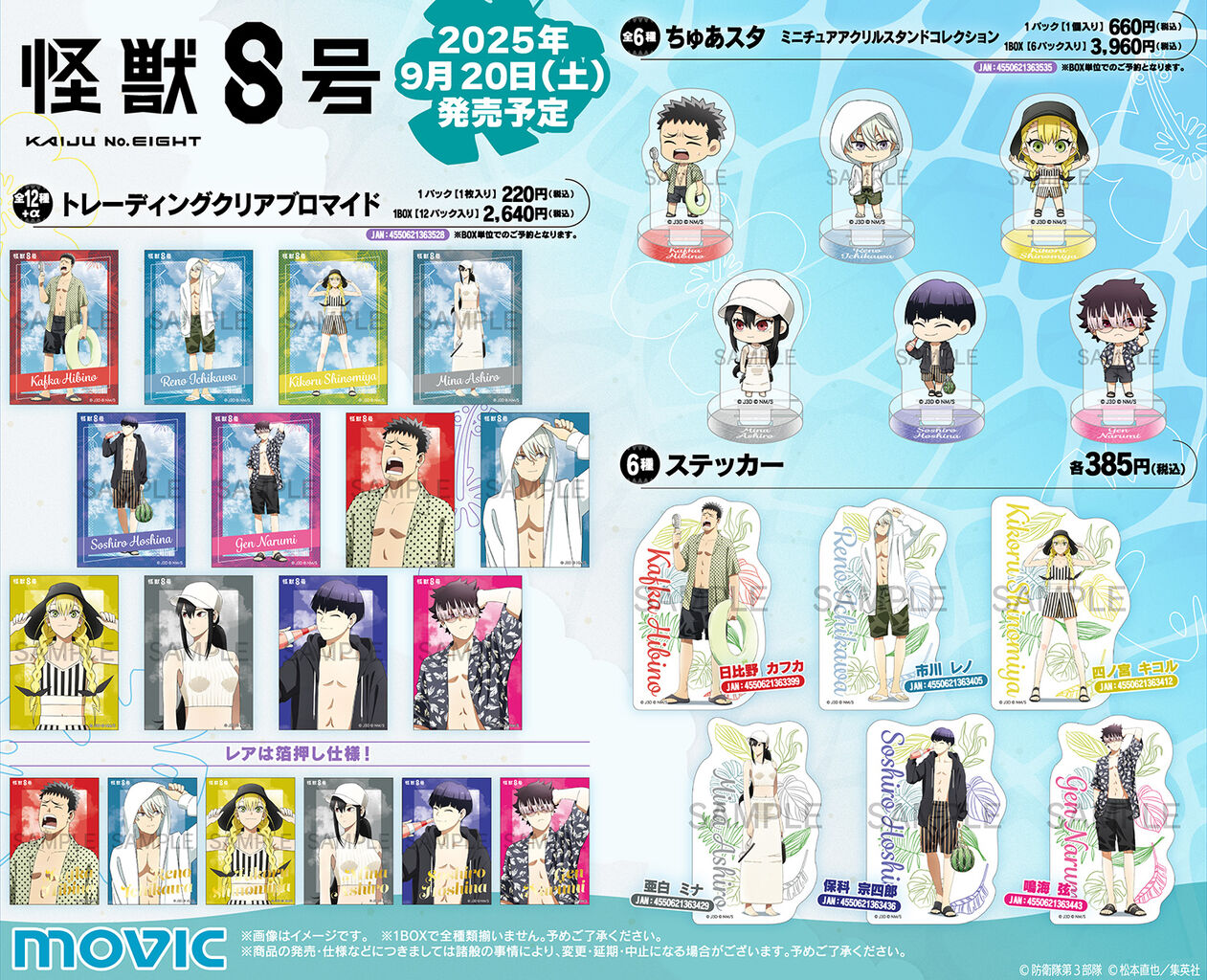 アニメ『怪獣8号』SUMMERフェア 2025 2025/07/25 発売日:2025年9月20日発売元:ムービック参考価格: <予約&購入> アニメイト ムービック あみあみ ネオウィング METAL BOX アニメストアホビーストック セブンネット 楽天市場駿河屋 AmazonYahoo!ショップコレイズ <商品情報>期間中、関連商品のご購入・ご予約で「ポストカード(全6種)」1枚プレゼント<関連商品> < 前の記事次の記事 > コメント コメントフォーム 名前 コメント 記事の評価 リセット リセット 顔 星 情報を記憶 コメントを投稿する