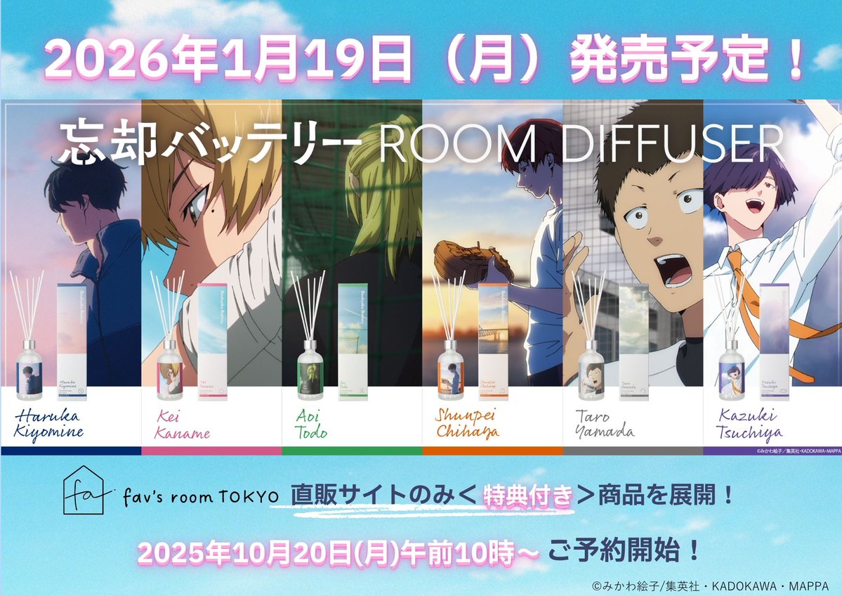 忘却バッテリー ルームディフューザー 2025/10/18 発売日:2026年1月19日 発売元:GSIクレオス参考価格:4,400円(税込)<予約&購入> アニメイト fav's room TOKYO 特典付き あみあみ ネオウィング METAL BOX アニメストアホビーストック セブンネット 楽天市場駿河屋 AmazonYahoo!ショップコレイズ <商品情報>【素材】ボトル:硝子パッケージ(箱、仕切):紙キャップ:プラリードスティック:プラ【サイズ】パッケージ:奥行51mm×横幅52mm×高さ245mmボトル:高さ107mmスティック(6本入):高さ240mmスティック挿入部の直径:14mm正味量:100ml(開封後)香りの持続期間:1ヶ月~3ヶ月※製品を置くお部屋の面積などにより変動します。<関連商品> < 前の記事次の記事 > コメント コメントフォーム 名前 コメント 記事の評価 リセット リセット 顔 星 情報を記憶 コメントを投稿する