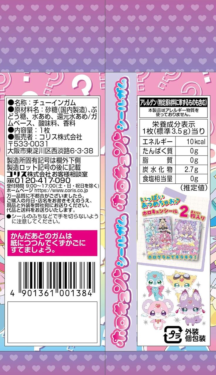 名探偵プリキュア!ホロキュンシールガム ソーダ味 ガム 2026/01/11 発売元:コリス発売日:2026年2月11日参考価格:1,650円(税込)<予約&購入> 楽天市場駿河屋 AmazonYahoo!ショップ あみあみ METAL BOX アニメストアホビーサーチ <商品紹介>プリキュアのシール入り全25種。キラキラホログラム入りです女児向けのキラキラ&ポップなデザインです<関連商品> < 前の記事次の記事 > コメント コメントフォーム 名前 コメント 記事の評価 リセット リセット 顔 星 情報を記憶 コメントを投稿する