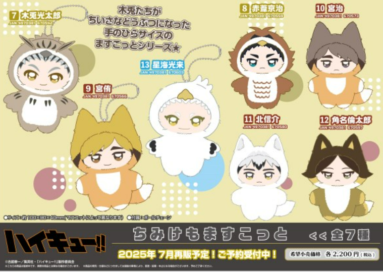 アニメ「ハイキュー!!」から、ちいさなどうぶつになった、手のひらサイズのマスコットシリーズちみけもますこっとが登場です!